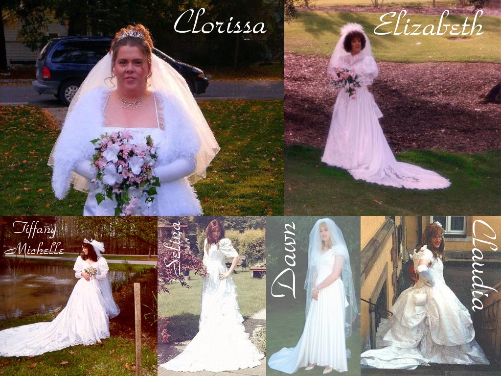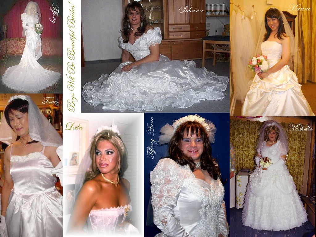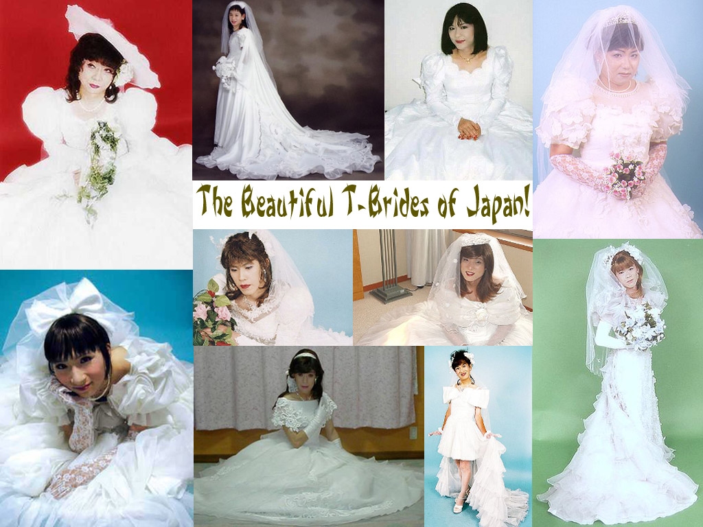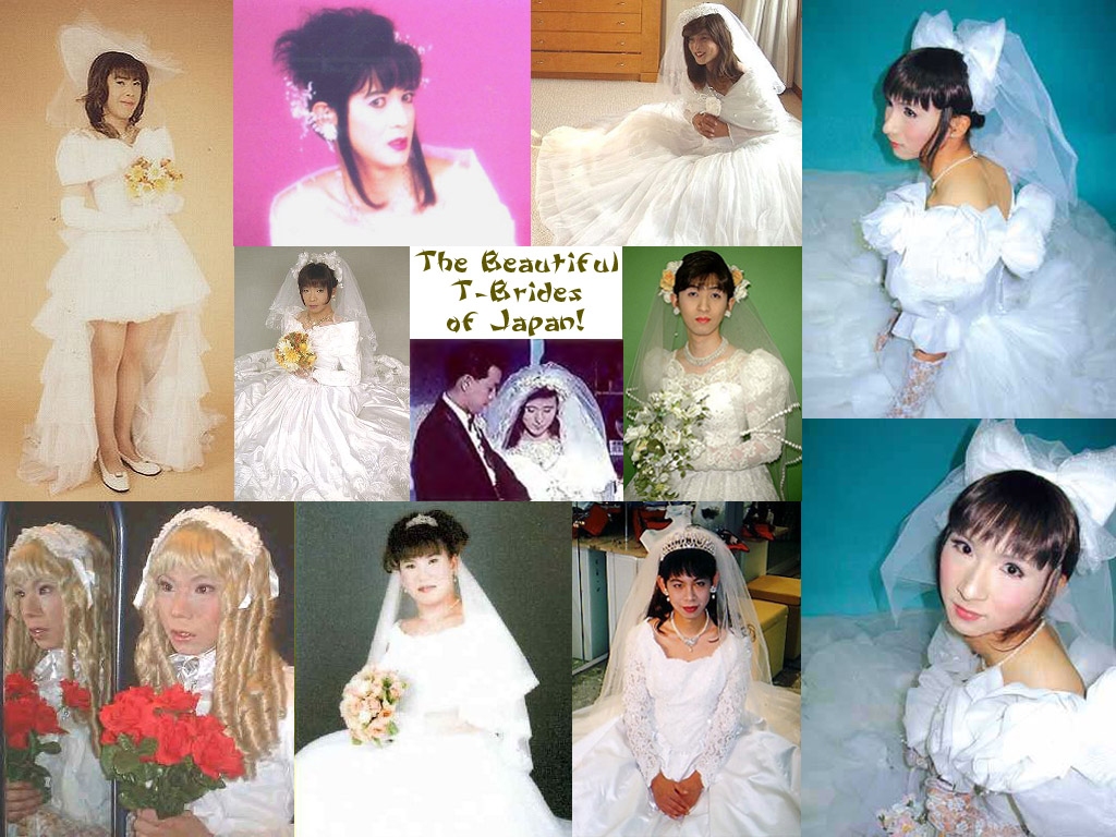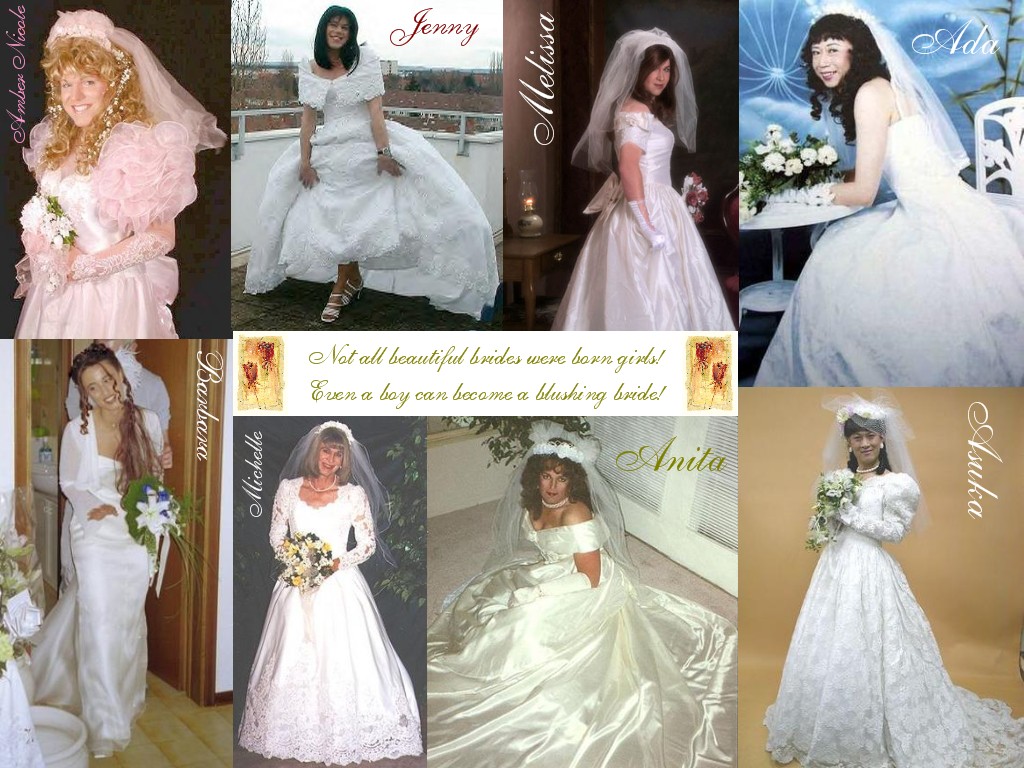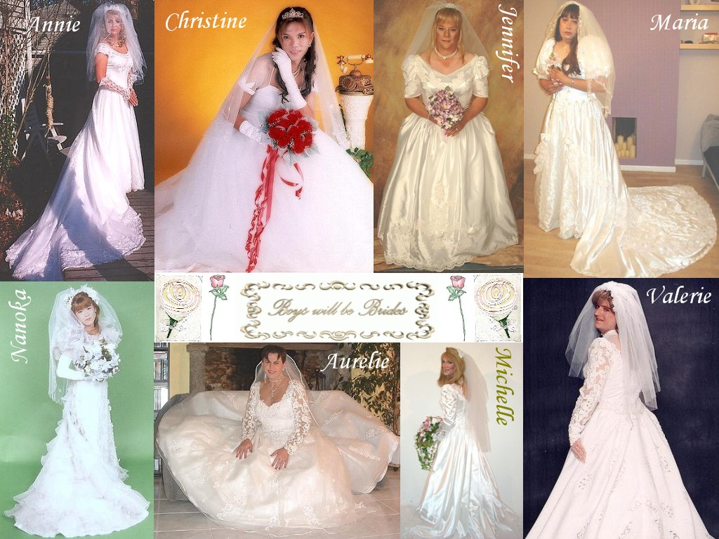 Dans le sens des aiguilles d'une montre, en partant du haut gauche : Tiffany (U.S. CD bride), Sabrina (German CD bride), Karine (U.S. CD bride), Michelle (U.S. CD bride), Tiffany Anne (U.S. CD bride), Leila (U.S. pre-op TS bride), Tomo (Japanese CD bride)